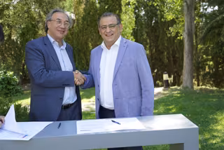 El conseller de Educación y Universidad, Martí March, y el alcalde de Calvià, Alfonso Rodríguez, han firmado este martes un convenio de colaboración para la financiación y ejecución de las obras de construcción del nuevo Centro de Educación de Personas Adultas (CEPA) en el municipio de Calvià, en unos terrenos públicos municipales ubicados en la zona de Magaluf.
