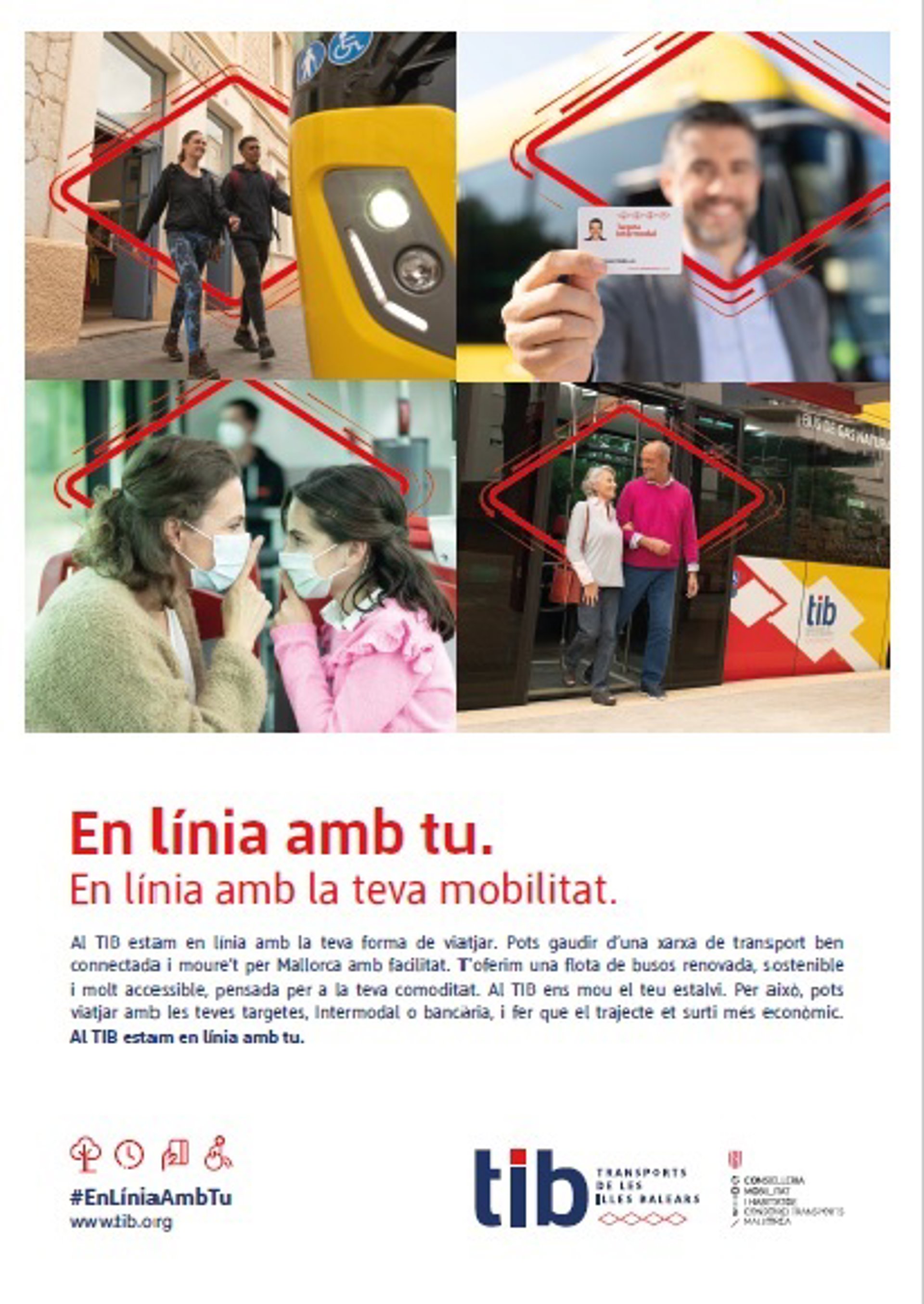 Bajo el lema 'En línia amb tu' (En línea contigo) se presenta una red de transporte más conectada, accesible, sostenible y económica, pensada para cubrir las necesidades de movilidad de los residentes de Mallorca.