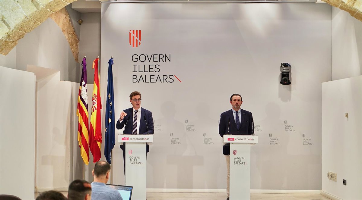 El conseller de Economía, Hacienda e Innovación, Antoni Costa, y el conseller de Empresa, Empleo y Energía, Alejandro Sáenz de San Pedro, en rueda de prensa. - CAIB
