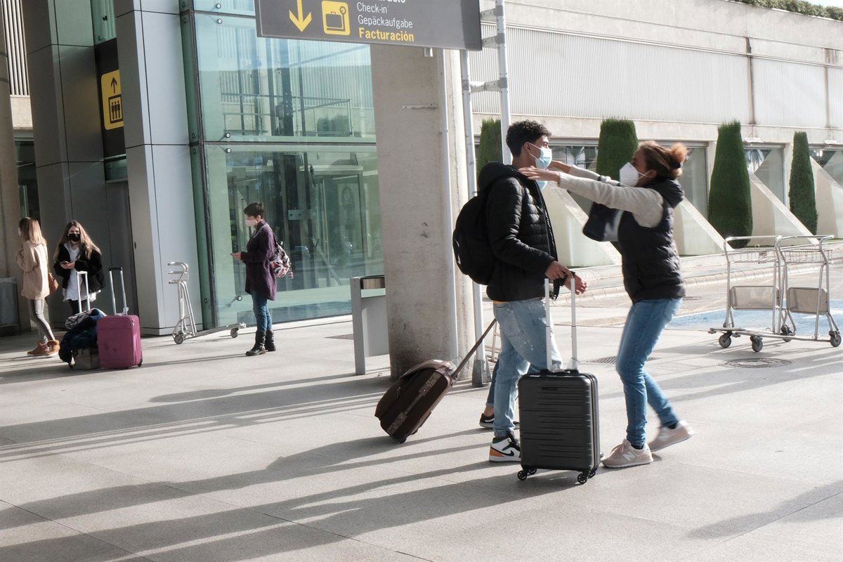 Archivo - Dos personas se abrazan a las afueras del aeropuerto de Palma. - Isaac Buj - Europa Press - Archivo