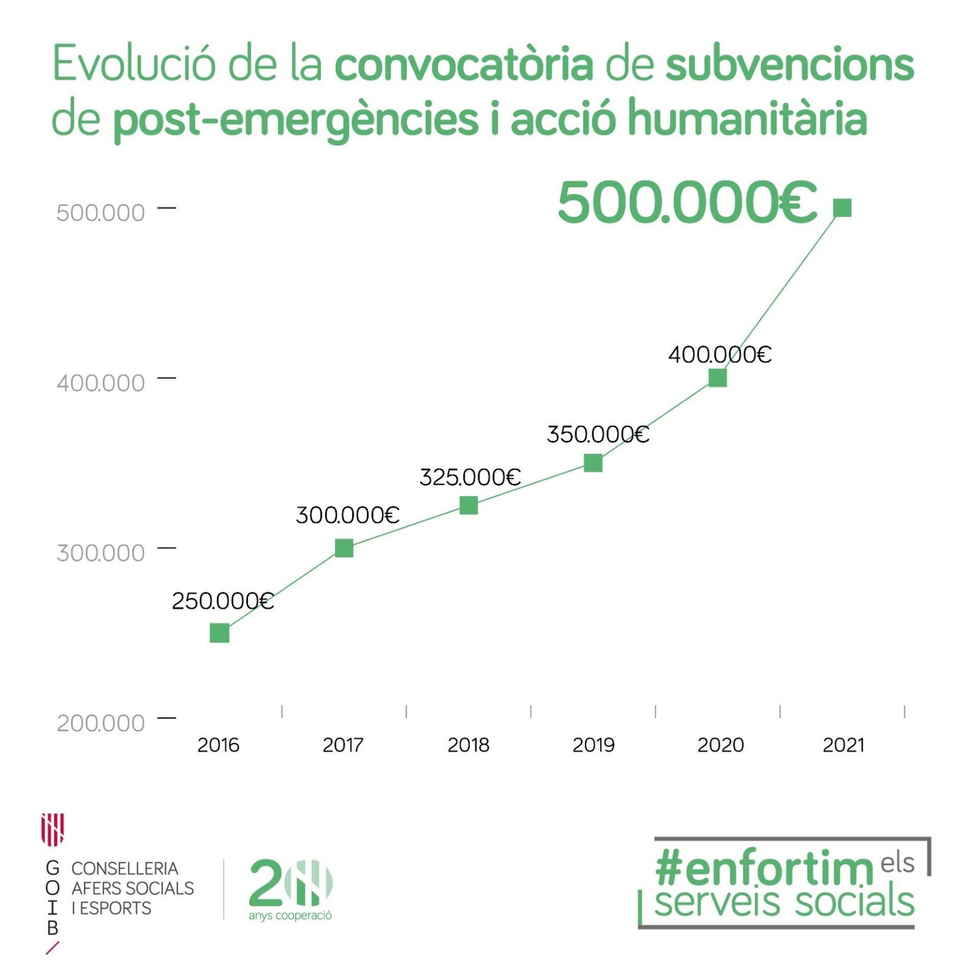 Evolución del presupuesto de Asuntos Socilaes para ayudas de post emergencias y acción humanitaria. - CAIB