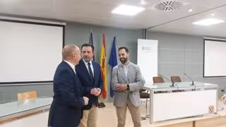 De izquierda a derecha, el gerente del IBE, Hernando Rayo, el conseller de Empresa, Empleo y Energía, Alejandro Sáenz de San Pedro, y el director general de Economía Circular, Transición Energética y Cambio Climático, Diego Viu. - EUROPA PRESS