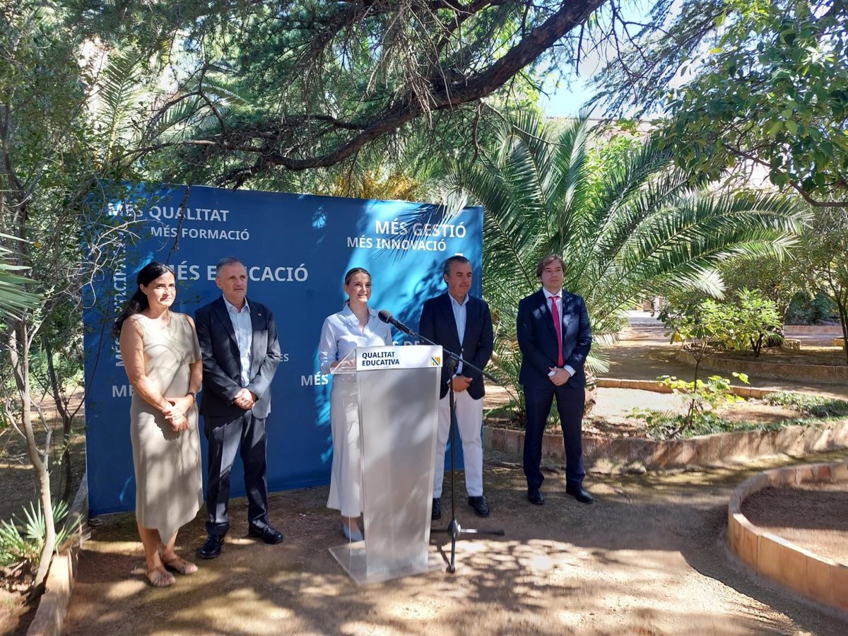 La presidenta del Govern, Marga Prohens, junto al conseller de Educación y Universidades, Antoni Vera, el rector de la UIB, Jaume Carot, y otras autoridades, en una rueda de prensa - EUROPA PRESS