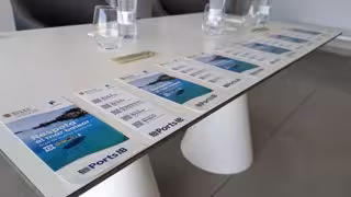 Durante la presentación han estado presentes el director general de Puertos y Transporte Marítimo, Antoni Mercant; el gerente de PortsIB, Kiko Villalonga, y el presidente de Fanmed, Gabriel Dols.