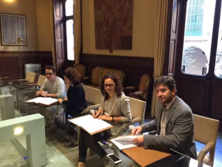 A la reunión han asistido la consellera de Hacienda y Adminstraciones Públicas, Catalina Cladera; la consellera de Servicios Sociales y Cooperación, Fina Santiago; y los diputado de Podemos Alberto Jarabo y Carlos Saura.