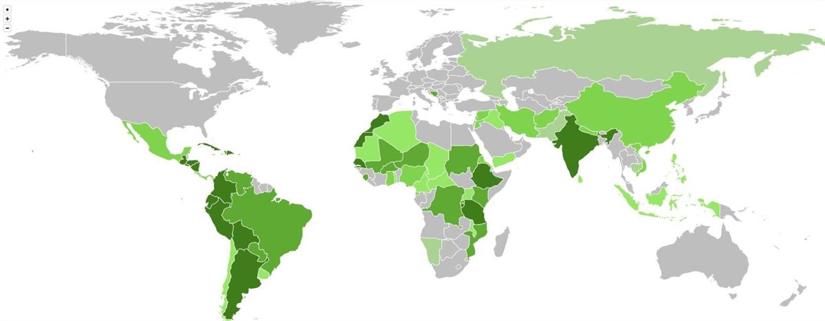 La mayor parte de los casi 96 millones ha sido para países de América central y Caribe (29,9 millones), América del Sur (22,9 millones). Le siguen países del Mediterráneo y Oriente Medio (16,8), África subsahariana (14,9) y Asia (11,2).