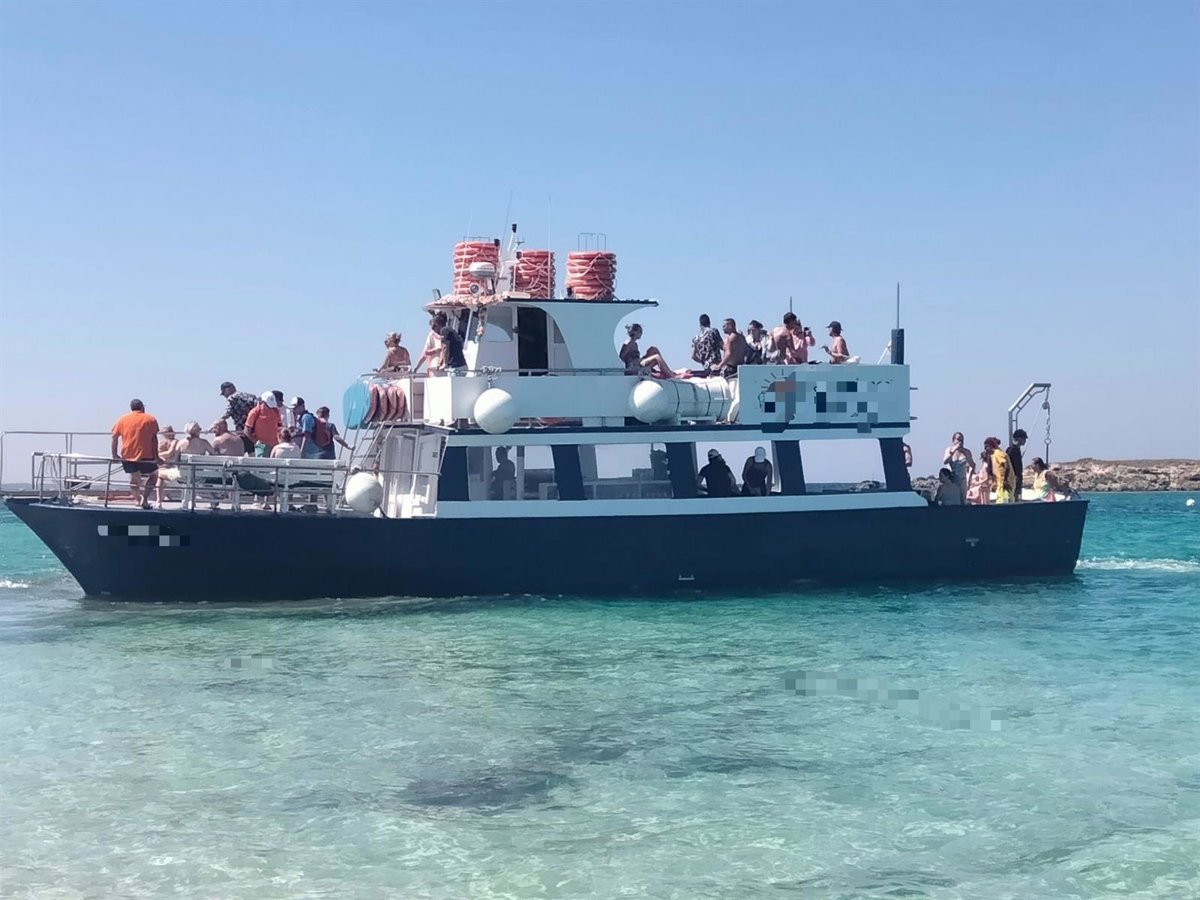 Embarcación de una empresa que desembarcaba turistas en el islote de s'Espalmador en Formentera. - CAIB