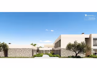 Para que el proyecto quede integrado en el entorno la fachada será de marés y mortero. Las cubiertas serán planas y principalmente de grava pero en la zona de las habitaciones tienen jardín con objeto de dar continuidad al entorno natural.