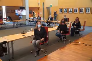 La presidenta ha trasladado a los alcaldes la necesidad de ofrecer más espacios para terrazas a los establecimientos y ha apuntado la posibilidad de que los comercios puedan sacar sus productos al exterior.