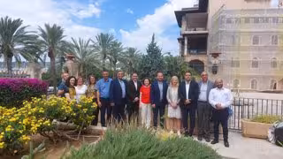 Delegación del Gobierno de Túnez, con la consellera de Asuntos Sociales y Deportes, Fina Santiago, el conseller de Medio Ambiente y Territorio, Miquel Mir, y el director de la UICN, Maher Mahjoub, en su visita a Mallorca. - EUROPA PRESS