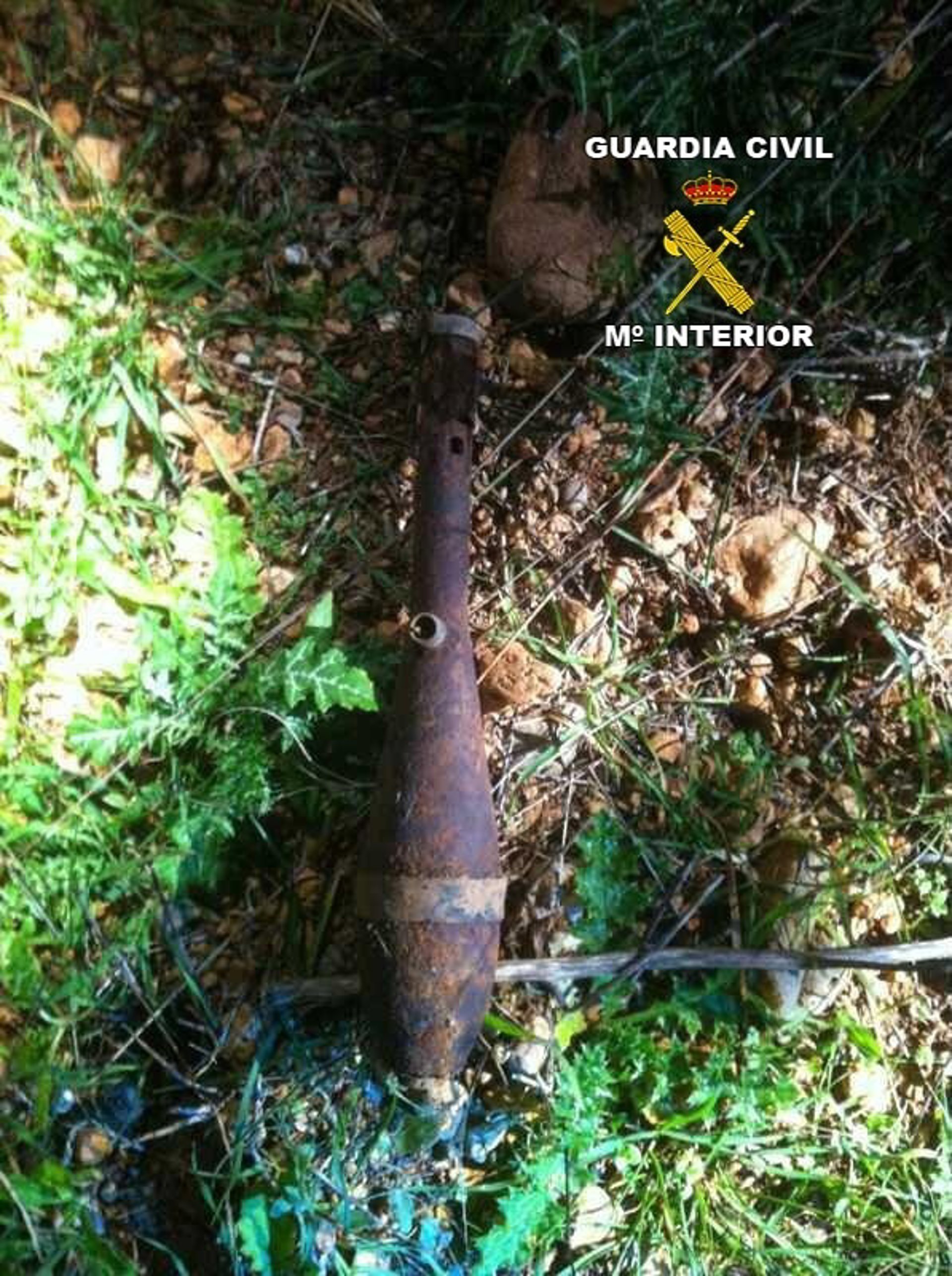 El Equipo de Desactivación de Explosivos (GEDEX) de la Guardia Civil destruyó este domingo una granada de mortero, modelo Valero de 50 milímetros, de la época de la Guerra Civil.