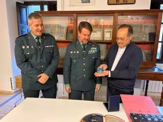 El coronel ha aprovechado el encuentro para entregar una medalla de la Virgen del Pilar como donación de la Guardia Civil al Monasterio de Lluc.
