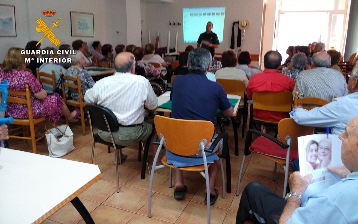 La Guardia Civil ha dado charlas a más de 500 personas de los clubes de mayores de Cala de Bou, San Jose, San Antonio, San Carlos, San Agustín, Santa Eulalia, San Lorenzo, Jesús, San Joan, San Jordi, Puig den Valls y Formentera, en el marco del Plan Mayor de Seguridad.