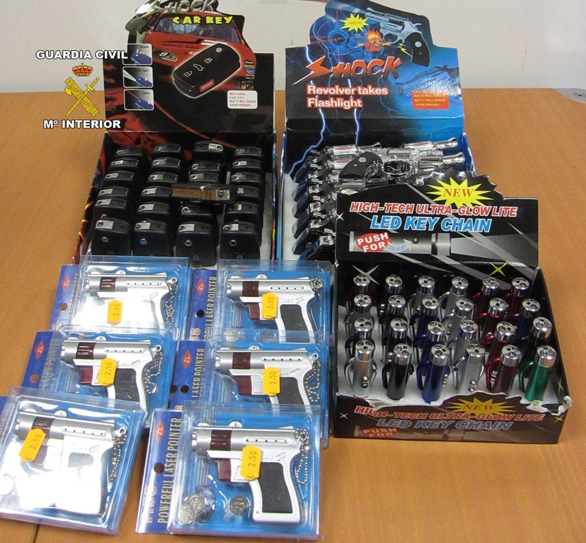 La Guardia Civil ha intervenido 2.533 punteros láser, de los cuales 813 eran de gran potencia, que estaban a la venta en varias tiendas de zonas turísticas de Calvià y en un almacén asiático de Palma de Mallorca y que no reunían las medidas de seguridad y de etiquetaje.