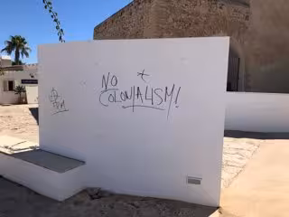En una de las pintadas aparece el mensaje 'No colonialism' y en otra se añadía la palabra "republicana" bajo la placa que reza 'Plaa de sa Constitució'.