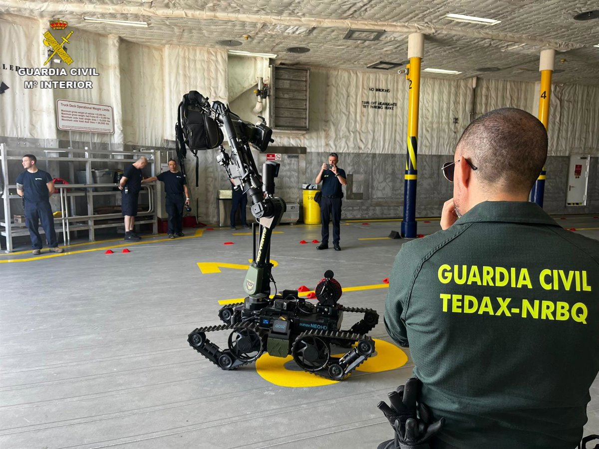 Las prácticas incluyeron el acceso a las bodegas y diferentes niveles del buque, mediante robots de desactivación realizando ejercicios específicos de subida de escaleras y acceso a espacios de difícil maniobrabilidad.