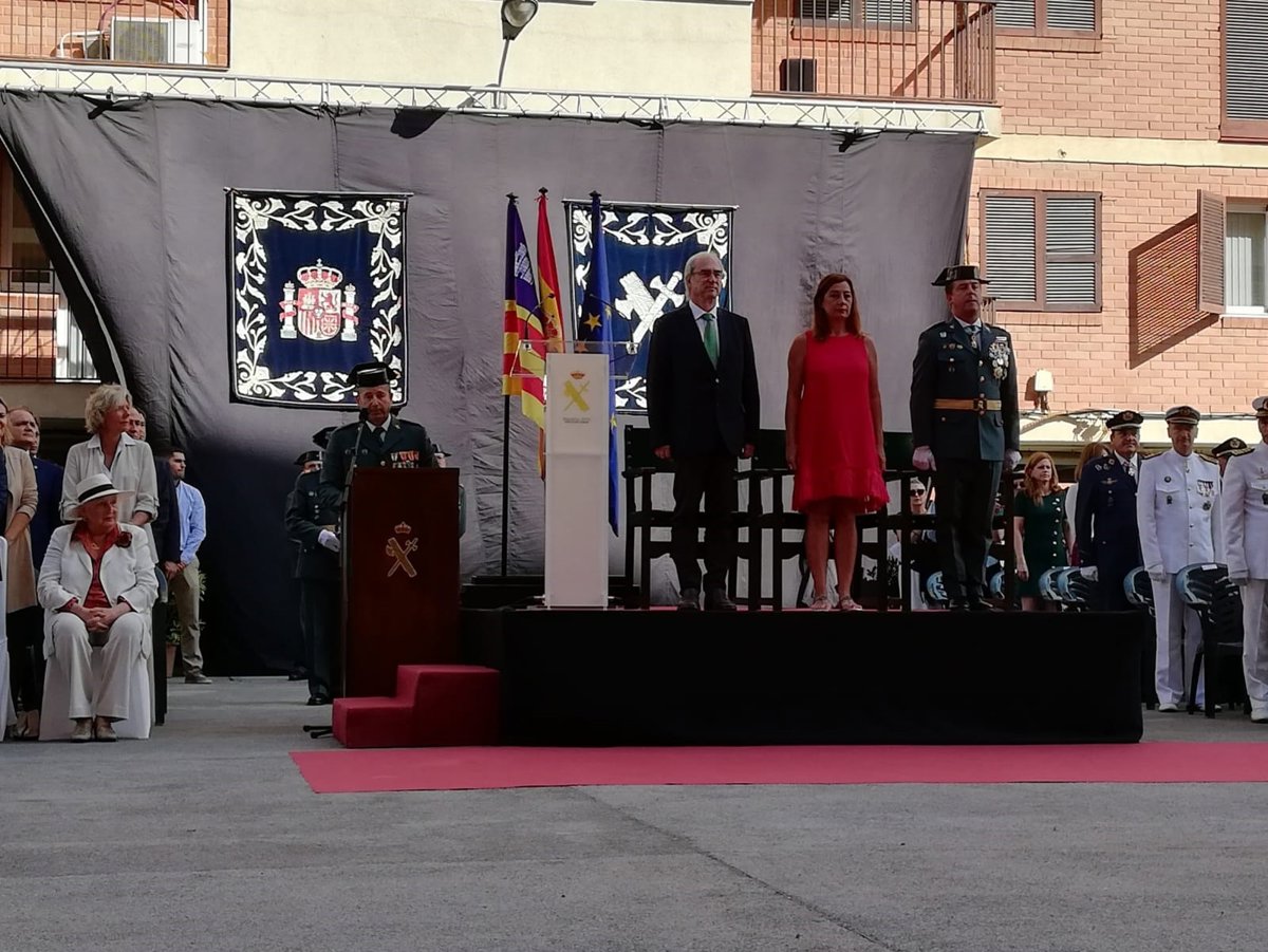 A la celebración ha asistido la hermana del Rey Emérito, doña Pilar de Borbón, así como la presidenta del Govern, Francina Armengol, entre otras autoridades. En la ceremonia se han impuesto condecoraciones a agentes y personal civil, entre ellos, al fundador de Meliá Hotels, Gabriel Escarrer Juliá, la directora de Air Europa, María José Hidalgo Gutiérrez, y el presidente de la Audiencia Provincial, Diego Gómez-Reino.