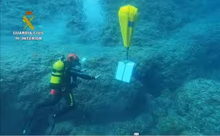 Los buceadores de la Guardia Civil llevaron a cabo un reconocimiento subacuático y localizaron la caja fuerte a 15 metros de profundidad. Consiguieron reflotarla mediante un globo elevador.