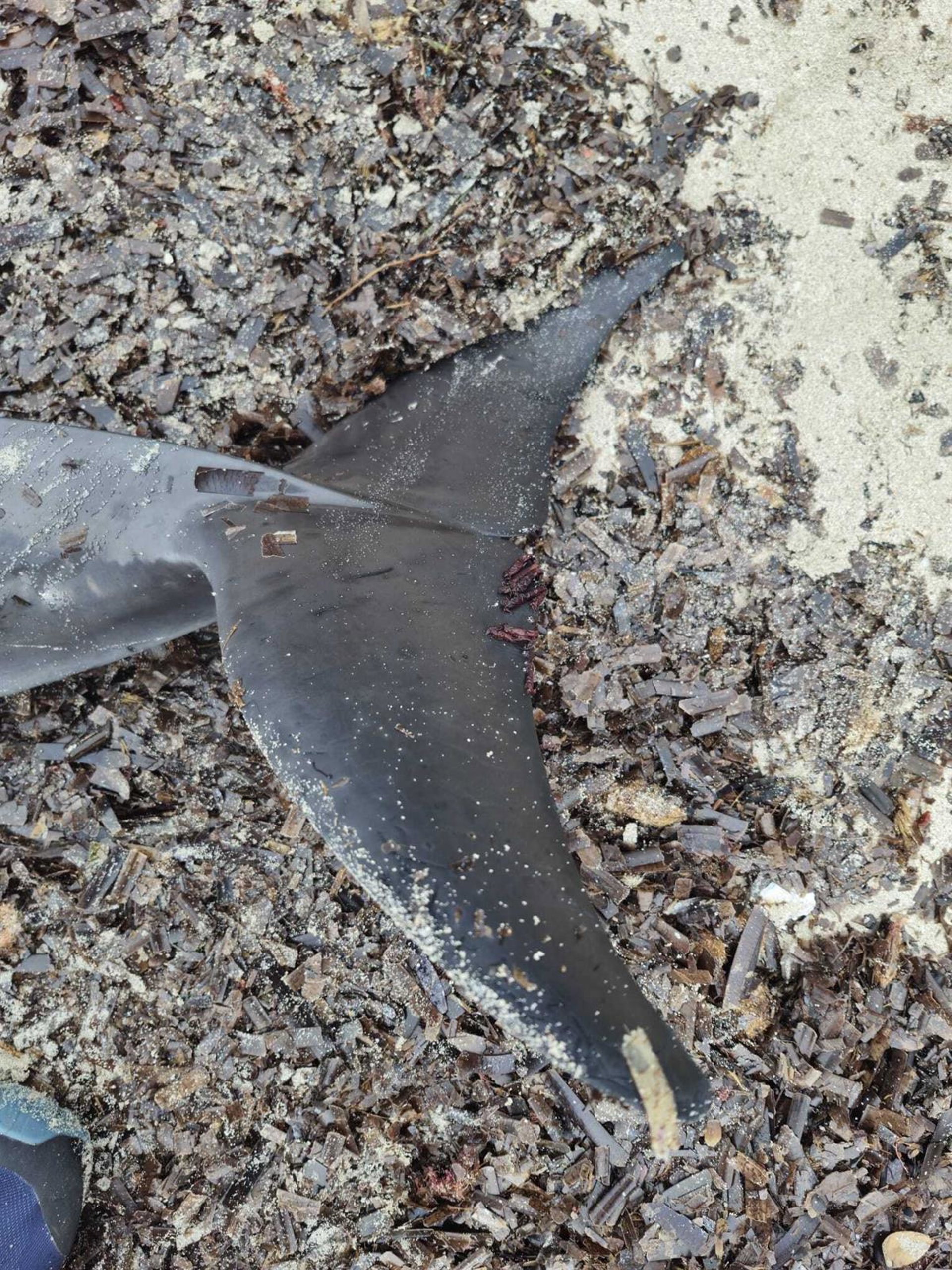 La cola de uno de los delfines hallados sin vida. - FUNDACIÓN PALMA AQUARIUM
