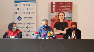La activista mexicana Marusia López, el vicerector de Campus, Cooperanción y Universidad Saludable, Antoni Aguiló, y la activista y defensora de derechos humano Helena Maleno - EUROPA PRESS