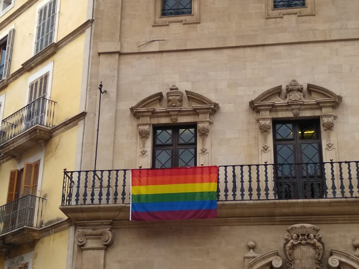 El alcalde de Palma, Jose Hila, ha colgado este martes la bandera LGTBI del balcón del Ayuntamiento de Palma con motivo del Orgullo 2019 y ha invitado a todos los miembros del colectivo a "desarrollar su vida en libertad".