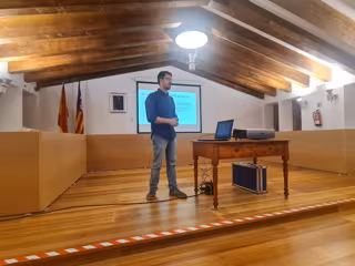 Durante el acto de presentación en Sa Fbrica, el director gerente del IBE, Ferran Rosa, explicó el procedimiento público de inscripción y el funcionamiento del autoconsumo compartido.