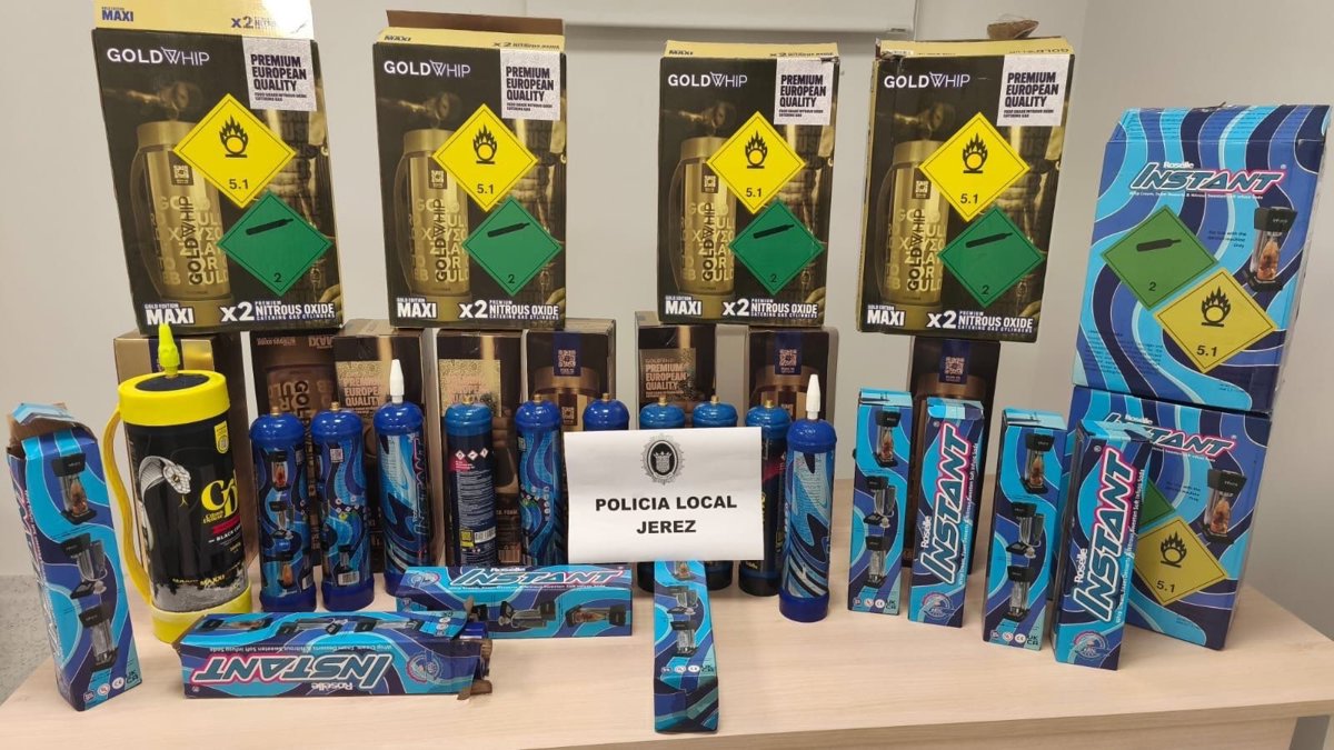 Archivo - Botellas de óxido nitroso incautadas en Jerez - AYUNTAMIENTO DE JEREZ - Archivo