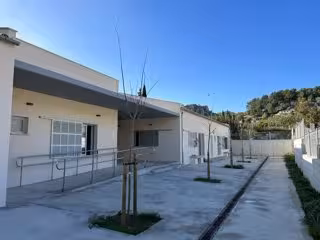 El edificio es de planta baja y está formado por tres bloques que acogen la sala de profesores, los lavabos, las aulas y el comedor, además de las salas de instalaciones, el vestuario del personal no docente y el aula de apoyo.