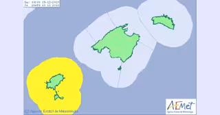 Además, habrá aviso amarillo por rachas máximas de viento de 80 kilómetros por hora en Ibiza y Formentera, Menorca, Serra de Tramuntana y sur de Mallorca.