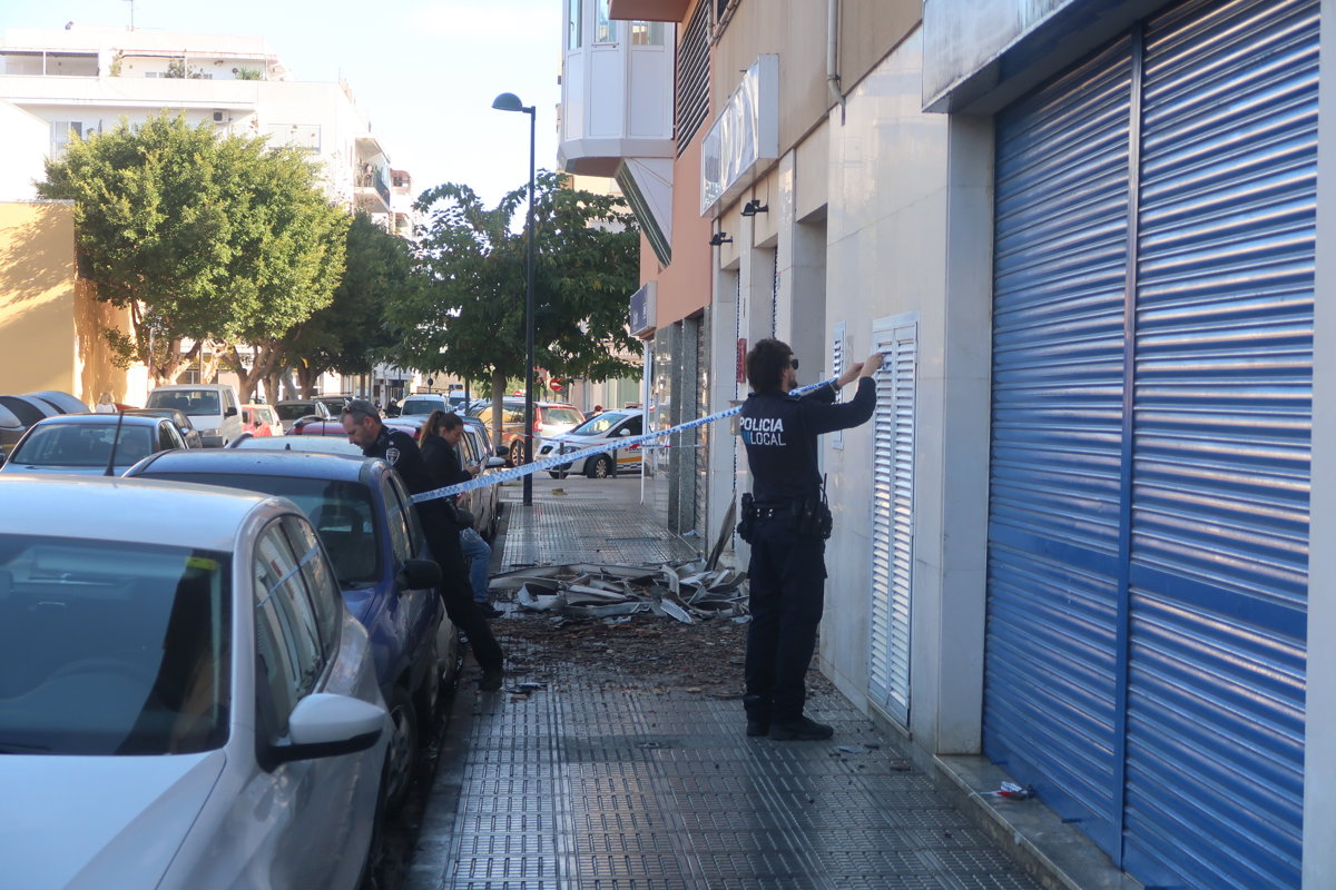 Según ha informado el Ayuntamiento de Ibiza, el aviso ha llegado sobre las 06.50 horas y hasta el lugar han acudido varias dotaciones de bomberos, así como agentes de la Policía Local y una ambulancia del 061 que ha atendido a un herido leve al que le había caído un cascote en un pie.