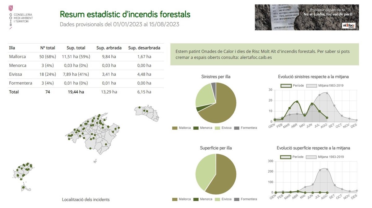 Resumen estadístico de incendios forestales en Baleares hasta el 15 de agosto. - CAIB