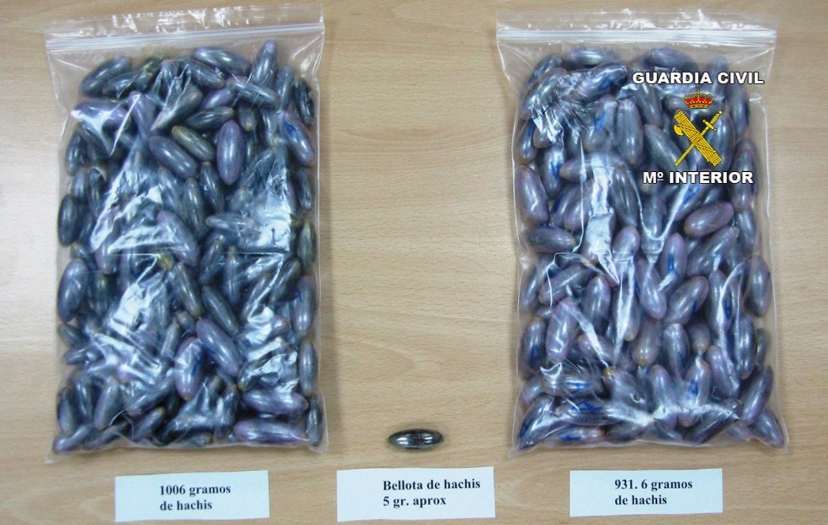 En ellos, según ha detallado, al realizarlo a un buque procedente de Denia, se identificó a los detenidos, los cuales portaban en el interior de su organismo 931.6 gramos y 1.006 gramos de hachís respectivamente, distribuidos en 243 capsulas.
