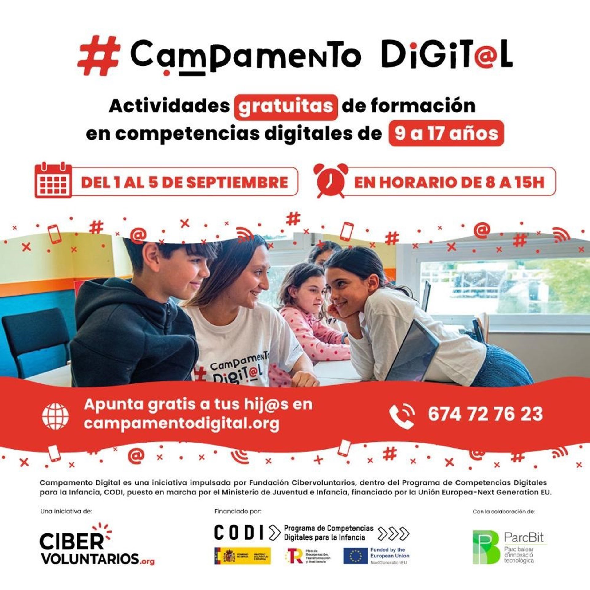 Cartel de 'Campamento Digital', una iniciativa que impulsa el talento de jóvenes con formación gratuita en competencias digitales - CAIB