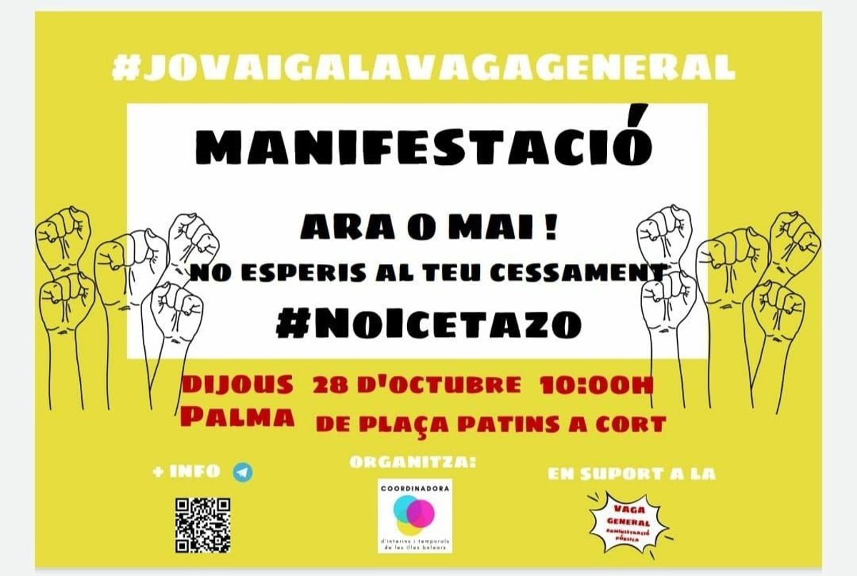 Cartel de la manifestación por la "fijeza de empleados públicos en abuso de temporalidad" el 28 de octubre en Palma. - COORDINADORA INTERINOS Y TEMPORALES BALEARES
