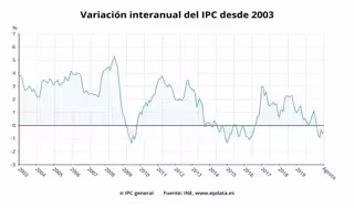 Con este avance de una décima, el IPC interanual regresa a los ascensos después de haber retrocedido en julio tres décimas. Con el dato de agosto, la inflación encadena cinco meses en tasas negativas.