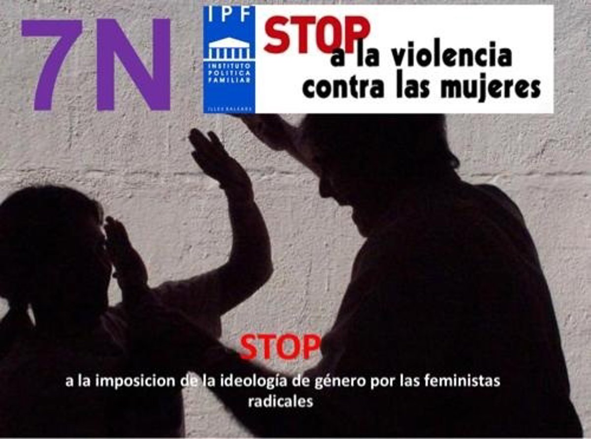 El Instituto de Política Familiar de Baleares (IPFB) ha lanzado la campaña 'STOP a la violencia contra las mujeres y a la ideología de género impuesta por el feminismo radical' ante "la manipulación" que se está haciendo con la convocatoria de la marcha estatal del 7-N contra la violencia machista.