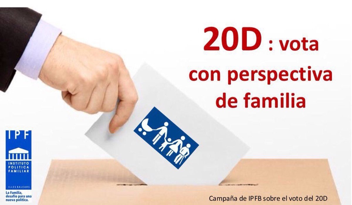 El Instituto de Política Familiar de Baleares (IPFB) ha lanzado una campaña para pedir "votar con perspectiva de familia" en las próximas elecciones generales del 20 de diciembre.