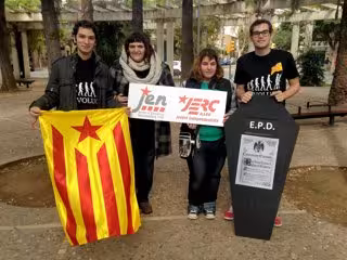 Las Juventudes de ERC (JERC) y los Joves d'Esquerra Nacionalista (JEN-PSM) han realizado este sábado una 'performance' en la que han enterrado la Constitución Española al entender que está "muerta y desfasada".