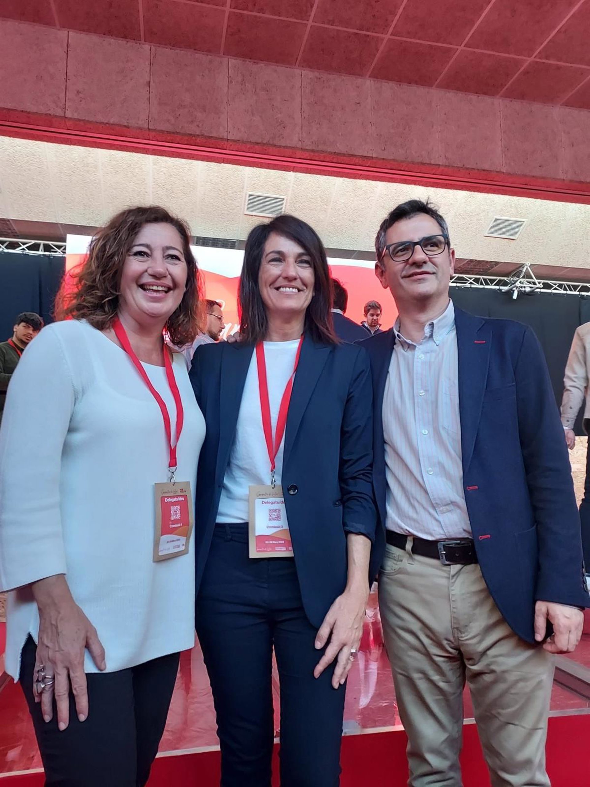 La presidenta del Consell de Formentera y candidata a la institución, Ana Juan, con la secretaria general del PSIB y presidenta del Govern, Francina Armengol, y el ministro de Presidencia, Relaciones con las cortes y Memoria Democrática, Félix Bolaños - PSIB-PSOE FORMENTERA