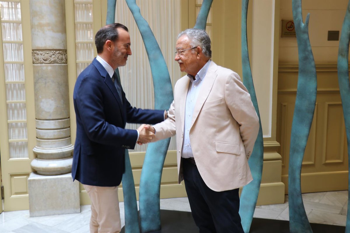 El presidente del Parlament, Gabriel Le Senne, y el presidente de la Cámara de Comercio de Mallorca, Eduardo Soriano. - PARLAMENT