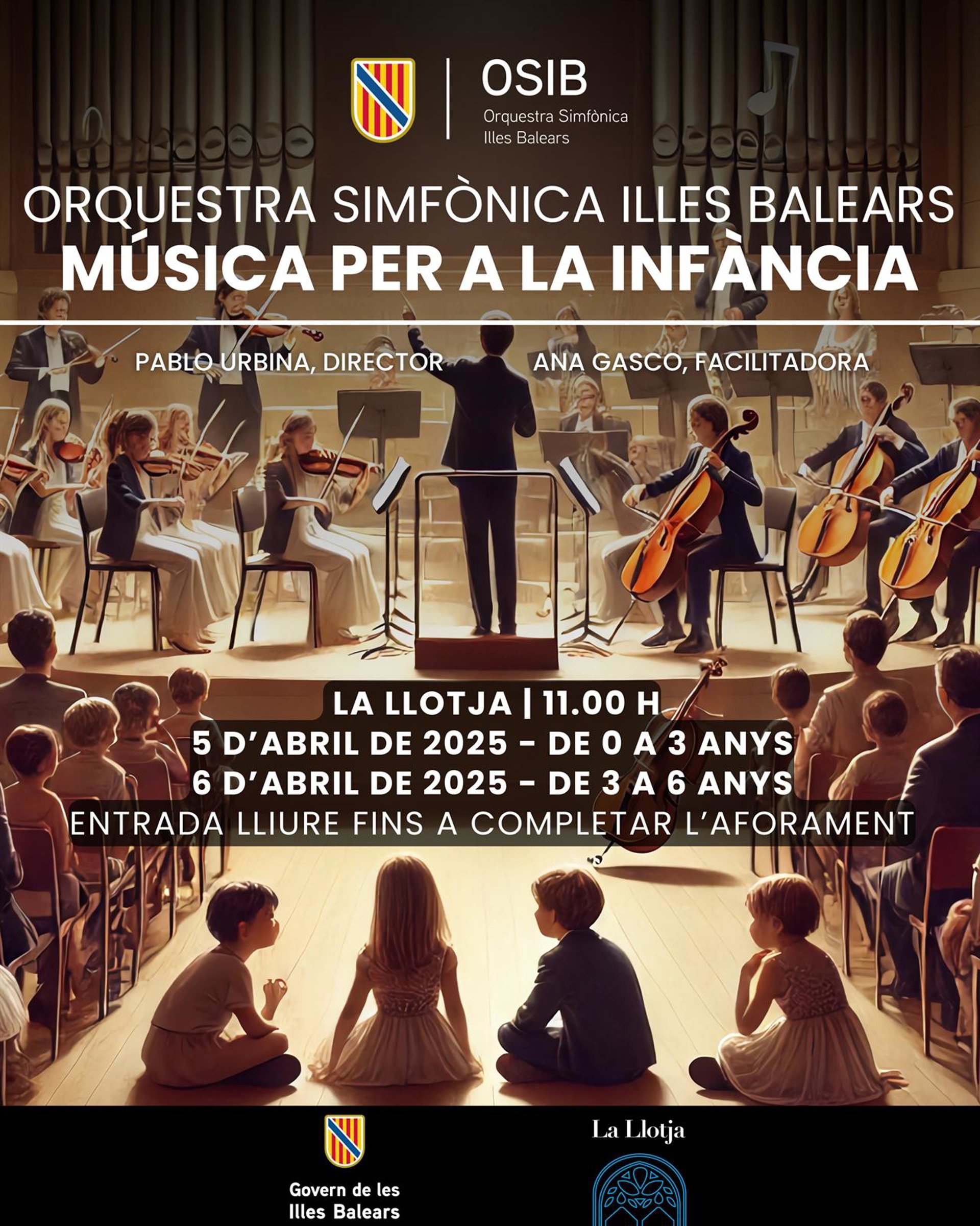 La entrada será libre hasta completar aforo y para ambas sesiones la OSIB contará con la facilitadora Ana Gasco y la dirección de Pablo Urbina.