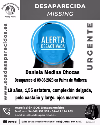 Cartel con la alerta desactivada de la desaparición de la joven de 19 años en Palma - SOS DESAPARECIDOS
