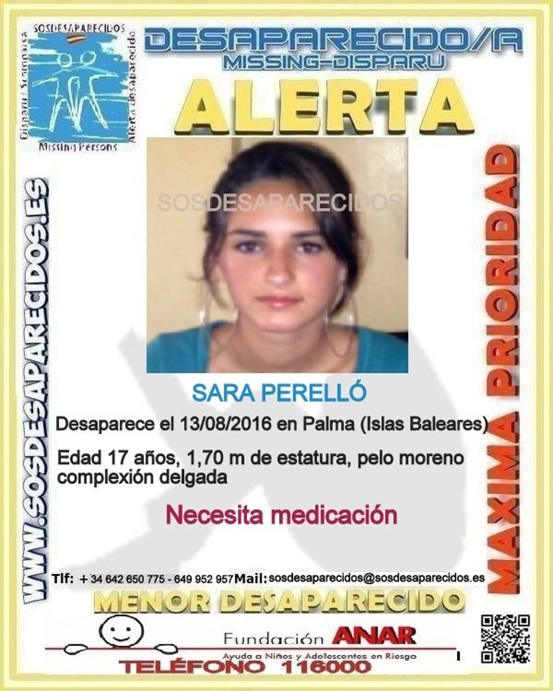 La Guardia Civil había informado este mismo martes de su desaparición en Palma. Según el cartel distribuido mide 1,70 metros de altura, tiene el pelo moreno, es de complexión delgada y necesita medicación.