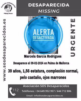 Cartel con la alerta desactivada de la desaparición de la mujer de 39 años en Palma - SOS DESAPARECIDOS
