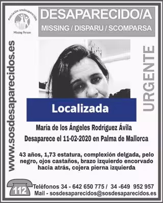 La mujer de 43 años que se encontraba en paradero desconocido desde la semana pasada, María de los Ángeles Rodríguez, en Palma ha sido finalmente localizada este lunes.