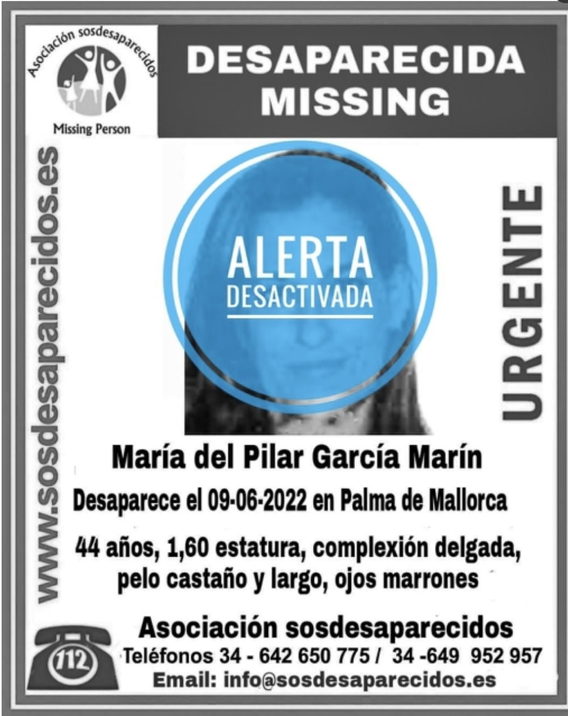 La asociación SOS Desaparecidos ha informado este viernes que ha sido localizada la mujer, de 44 años de edad, que fue vista por última vez este jueves en Palma.