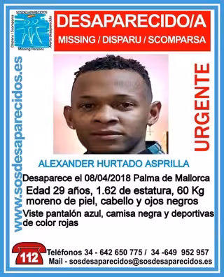 El cuerpo del joven de 29 años que desapareció en Palma el pasado día 8 de abril, Alexander Hurtado, ha sido localizado sin vida, según ha informado la Asociación SOS Desaparecidos.