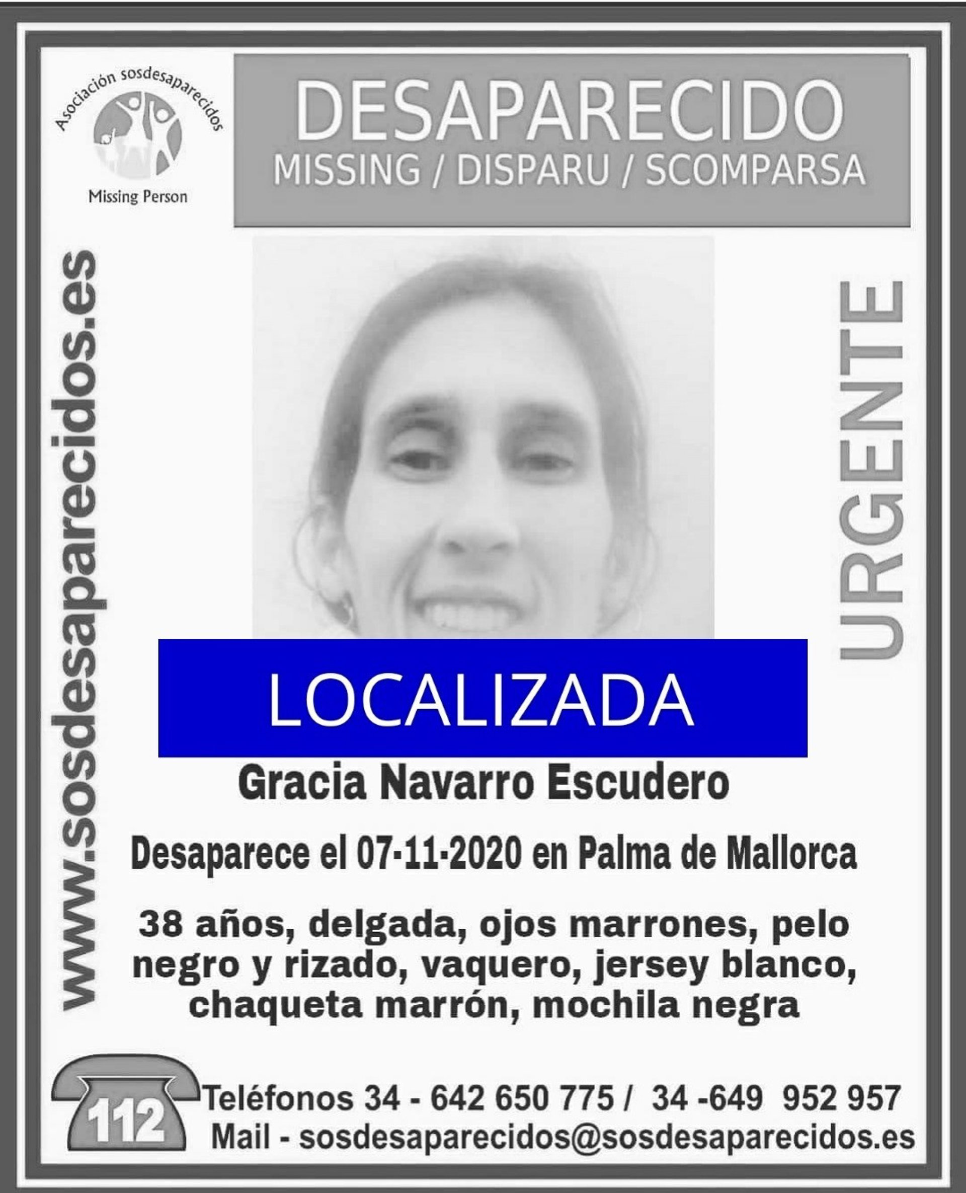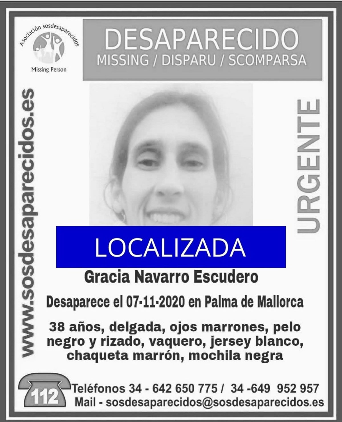 La organización SOSDesaparecidos ha informado este martes de que se ha localizado a la mujer de 38 años desparecida desde el pasado 7 de noviembre en Palma.
