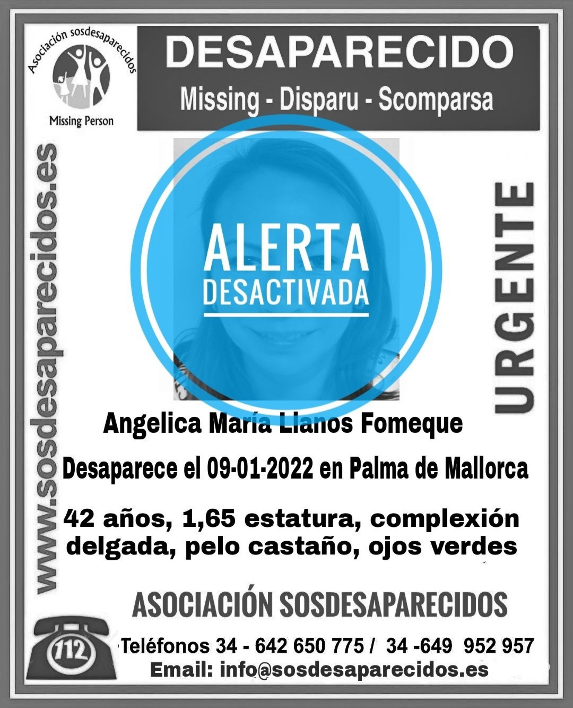 La Asociación SOSDesaparecidos ha informado este jueves de la localización de la mujer de 42 años cuya alerta de desaparición en Palma se había publicado este miércoles.
