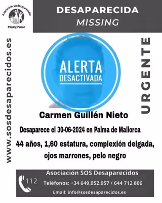 Cartel con la alerta desactivada de la mujer. - SOS DESAPARECIDOS